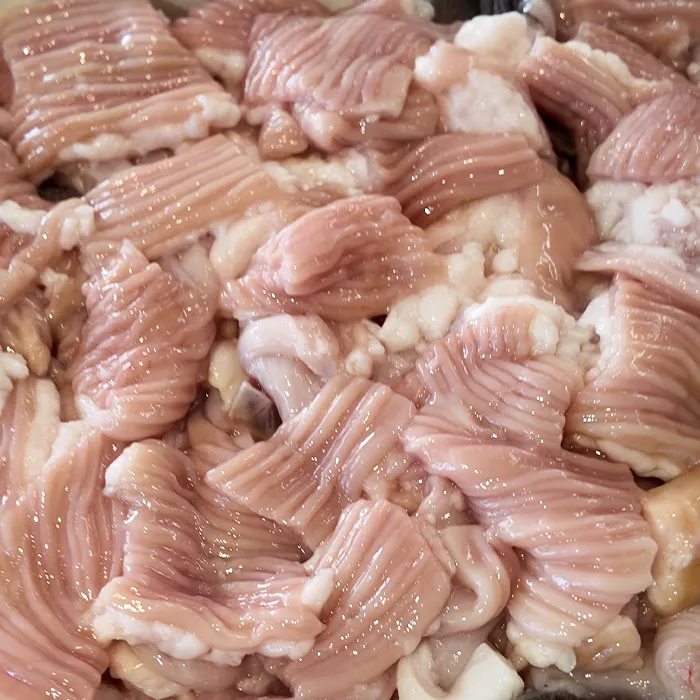親鳥のもも肉も取り扱っており、しっかりとした歯ごたえと濃い旨みが特徴です。焼き物や炒め物など様々な料理にお使いいただけるお肉として、多くのお客様から評判をいただいている人気の商品です。