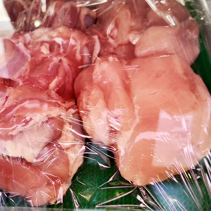 朝引きの新鮮な鶏肉を取り扱っており、やわらかくジューシーな味わいが特徴です。もも肉やむね肉をはじめ、手羽先や切り身など様々な商品をご用意しています。新鮮だからこそ味わえる旨みがあり、毎日の料理にも使いやすいお肉として多くのお客様にご利用いただいています。